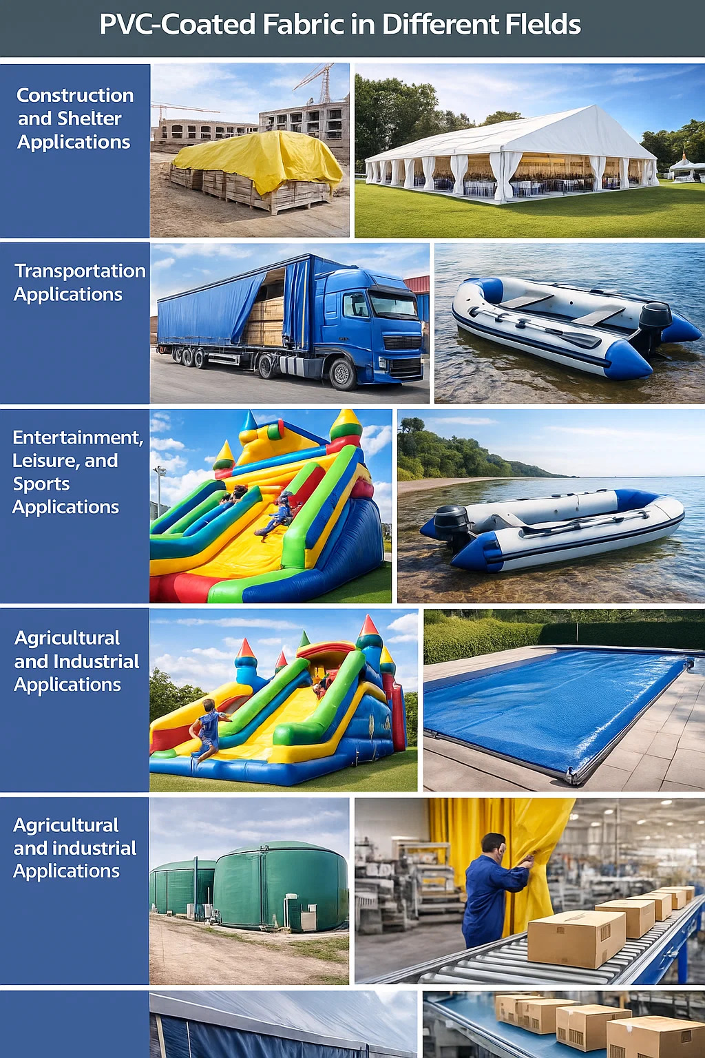 Íme a PVC-bevonatú szövet főbb felhasználási területei a különböző területeken: